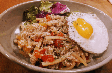 ナンプラー、オイスターソースで味付けしたアジア風ミンチの炒め飯!オハナ人気の一品